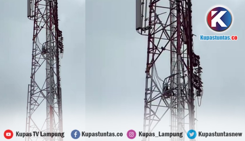 Kupastuntas.co, Lampung Selatan - Petugas gabungan berhasil mengevakuasi seorang pria yang sedang mencuri kabel di menara BTS milik provider Telkomsel di Desa Canggung, Kecamatan Kalianda, Kabupaten Lampung Selatan (Lamsel), Rabu (29/10/2025) pagi.