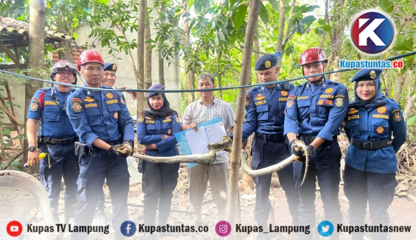 Petugas Damkar Evakuasi Ular Sanca 2,5 Meter Gegerkan Warga Rajabasa Bandar Lampung