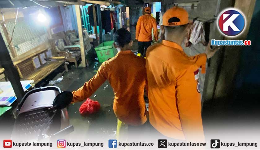 Gelombang Pasang Rendam Pasar Gudang Lelang, BPBD Bandar Lampung Turunkan TRC. Foto: Ist.