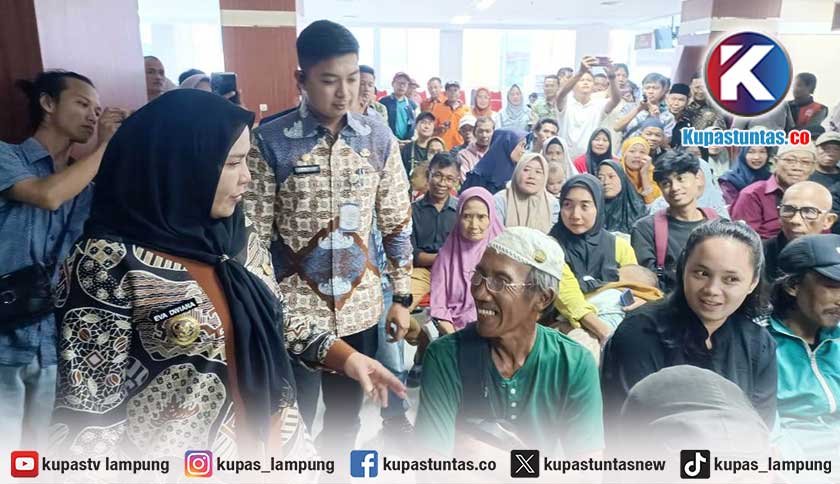 Walikota Bandar Lampung, Eva Dwiana, saat penyerahan bantuan di Gedung Mal Pelayanan Publik (MPP) Pemkot Bandar Lampung, Kamis (13/11/2025). Foto: Sri/kupastuntas.co