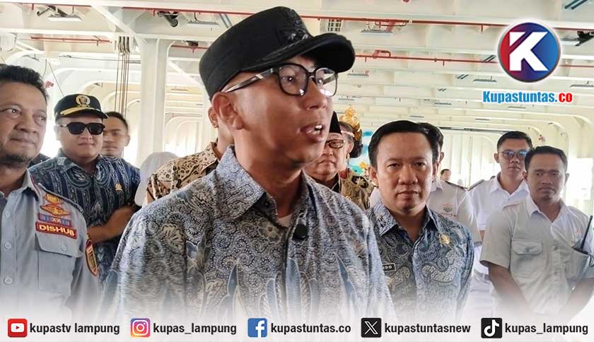 Gubernur Lampung Rahmat Mirzani Djausal, saat dimintai keterangan usai meresmikan Kapal Dalom, Jumat (14/11/2025). Foto: Ria/kupastuntas.co