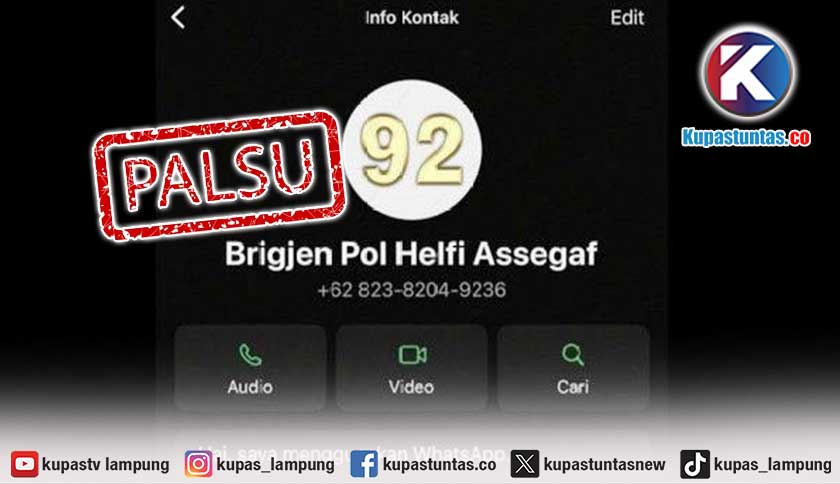 Kupastuntas.co, Bandar Lampung - Polda Lampung mengeluarkan peringatan resmi kepada masyarakat terkait maraknya aksi pemalsuan identitas yang mencatut nama Kapolda Lampung Irjen Pol Helfi Assegaf.