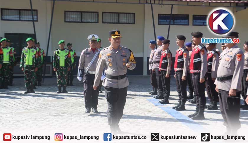 Kapolres Lampung Selatan AKBP Toni Kasmiri saat inspeksi pasukan sebelum memulai Operasi Zebra Krakatau 2025 pada Senin (17/11/2025). Foto: Ist