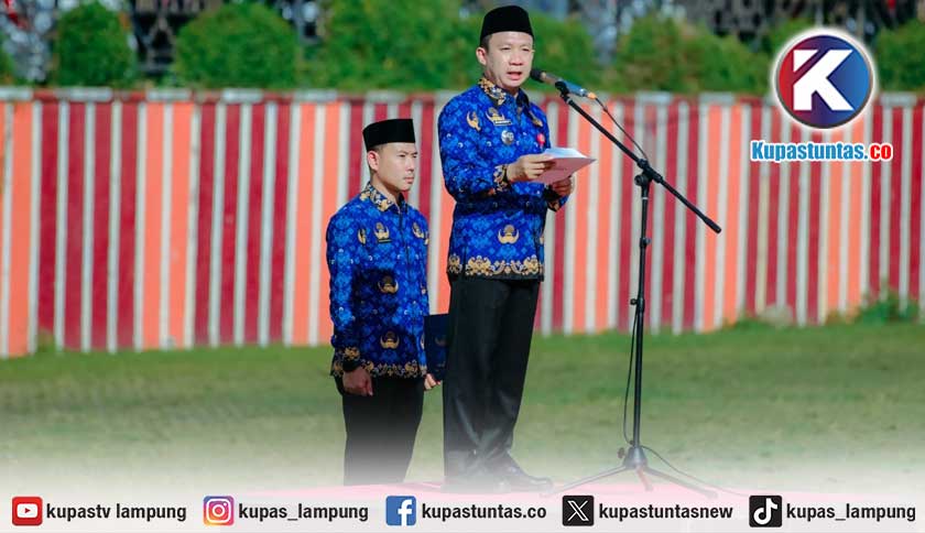Sekretaris Daerah Provinsi Lampung Marindo Kurniawan, mewakili Gubernur Lampung Rahmat Mirzani Djausal, saat memimpin Upacara Bulanan Pemerintah Provinsi Lampung di Lapangan Korpri, Komplek Kantor Gubernur, Senin (17/11/2025). Foto: Ist