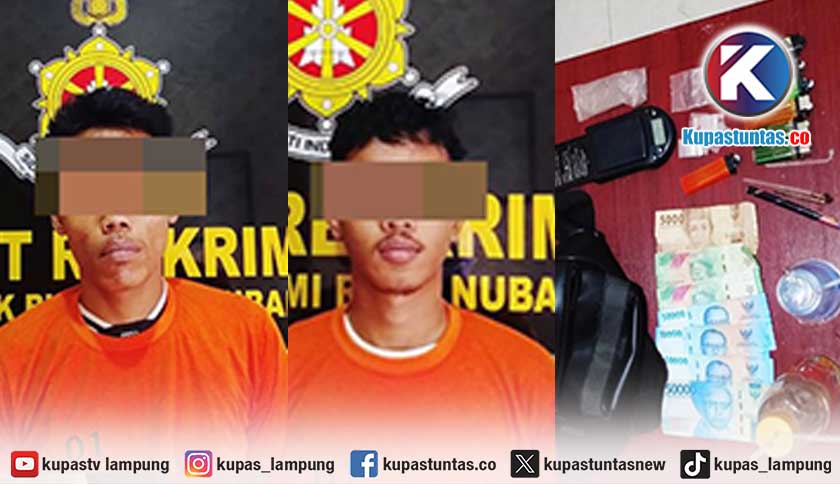 Kupastuntas.co, Lampung Tengah - Tekab 308 Presisi Polsek Bumiratu Nuban menangkap dua pemuda yang kedapatan tengah mengonsumsi sabu di sebuah rumah kosong di Kecamatan Bumiratu Nuban, Kabupaten Lampung Tengah (Lamteng), Selasa (18/11/2025) malam.
