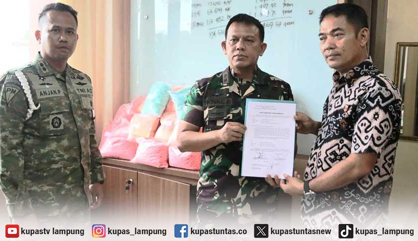 Penyerahan dilakukan langsung oleh Komandan Kodim 0411/KM, Letkol Inf Noval Darmawan, di ruang Subdit I Ditresnarkoba Polda Lampung, Jalan Terusan Ryacudu, Way Huwi, Kecamatan Jati Agung, Lampung Selatan. Barang bukti diterima oleh Kasubdit I Ditresnarkoba Polda Lampung, AKBP Y. Ujang Jundari.