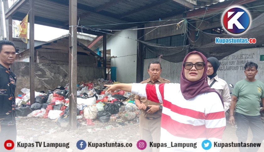 Bupati Lampung Timur Ela Siti Nuryamah sidak kondisi sampah di pasar Way Jepara yang menjadi keluhan warga. Foto: Agus/kupastuntas.co.