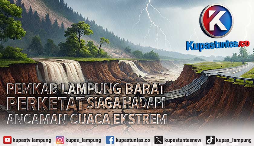 Kupastuntas.co, Lampung Barat - Pemerintah Kabupaten (Pemkab) Lampung Barat (Lambar) meningkatkan langkah antisipasi menghadapi potensi cuaca ekstrem yang tengah melanda sejumlah wilayah di Provinsi Lampung termasuk Lampung Barat.