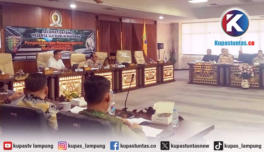 Kupastuntas.co, Bandar Lampung - Komisi V DPRD Provinsi Lampung menggelar uji publik Rancangan Peraturan Daerah (Raperda) usul inisiatif tentang Pengelolaan dan Penyelenggaraan Mutu Pendidikan, di ruang rapat komisi, Senin (1/12/2025).