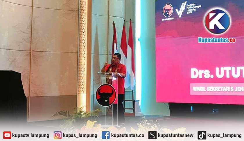 Wakil Sekretaris Jenderal (Wasekjen) Bidang Pemerintahan DPP PDI Perjuangan, Utut Adianto, saat menyampaikan amanatnya dalam acara Konferda dan Konfercab PDI Perjuangan Lampung. Foto: Sandika/Kupastuntas.co