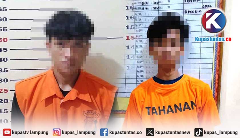 Dua tersangka saat diamankan di Mapolres Lampung Selatan. Foto: Ist.