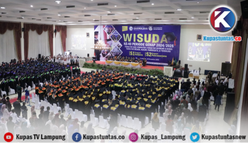 Kupastuntas.co, Bandar Lampung - Institut Informatika dan Bisnis (IIB) Darmajaya menggelar wisuda ke-40 dengan total terdapat 451 lulusan menyelesaikan studi jenjang strata satu (S1) dan jenjang strata dua (S2) bertempat di Gedung Bagas Raya pada Rabu, (10/12/25).