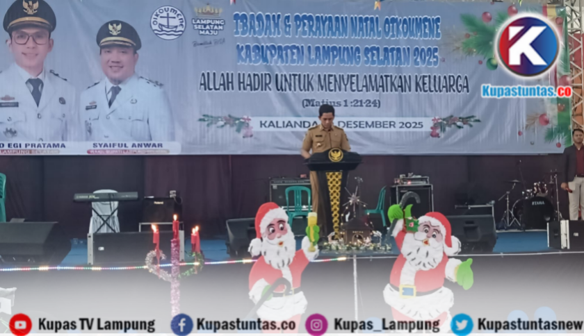 “Atas nama Pemerintah Kabupaten Lampung Selatan, saya mengucapkan selamat memperingati Hari Natal Tahun 2025 kepada seluruh umat Kristiani, serta selamat menyongsong Tahun Baru 2026 kepada seluruh masyarakat,” ucapnya.