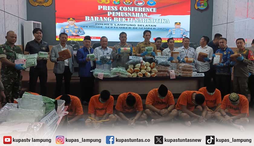 Sementara pada periode September hingga Desember 2025, Polres Lampung Selatan mengungkap sembilan kasus narkoba dengan 13 tersangka, terdiri dari 11 laki-laki dan dua perempuan. Barang bukti yang disita berupa 25,24 kilogram ganja, 61,2 kilogram sabu, 2.203 butir ekstasi, serta 4.496 cartridge cairan yang mengandung ganja. Dari pengungkapan ini, diperkirakan 186.862 jiwa terselamatkan dengan nilai ekonomis sekitar Rp42,74 miliar.