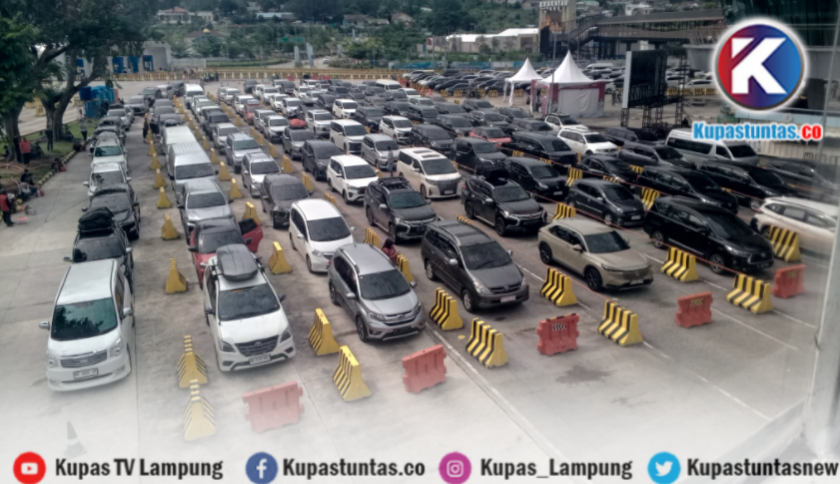Tampak antrean kendaraan yang hendak naik kapal di pelabuhan Bakauheni. Foto: Sandika/Kupastuntas.co