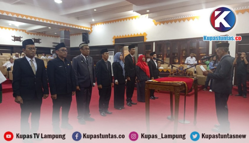 Asisten III Setda Kota Metro, Suwandi saat memimpin pelantikan 8 pejabat baru mewakili Walikota Metro. Foto: Arby/kupastuntas.co