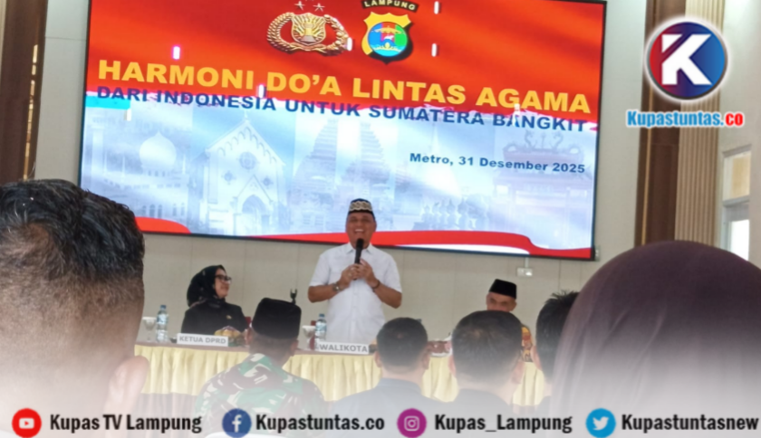 Kupastuntas.co, Metro – Di tengah duka bencana yang masih menyelimuti sejumlah wilayah di Sumatera dan di saat jarum jam bersiap menutup tahun 2025, Kota Metro memilih jalan sunyi yang penuh makna dengan menundukkan kepala, merapatkan barisan, dan menguatkan doa bersama lintas agama.