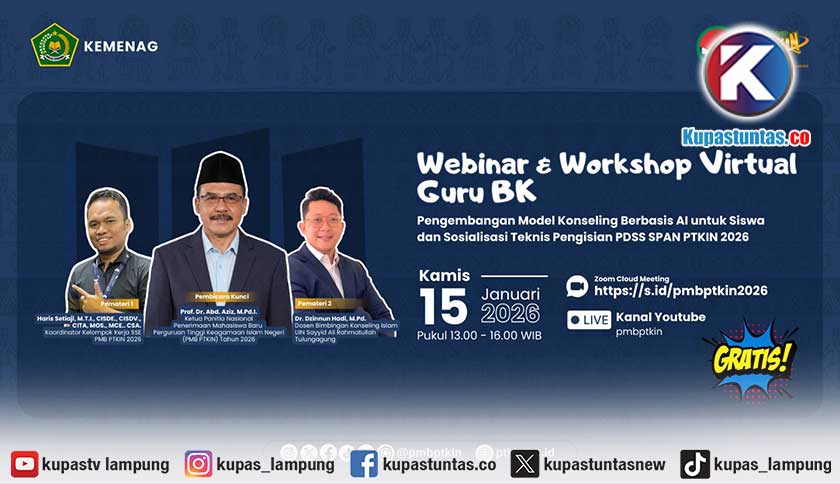 Lewat Workshop Virtual yang digelar Kamis (15/01/2026), ribuan Guru Bimbingan Konseling (BK), Kepala Sekolah, hingga operator dari seluruh penjuru negeri berkumpul untuk membedah masa depan konseling siswa berbasis AI menyambut PMB PTKIN 2026.