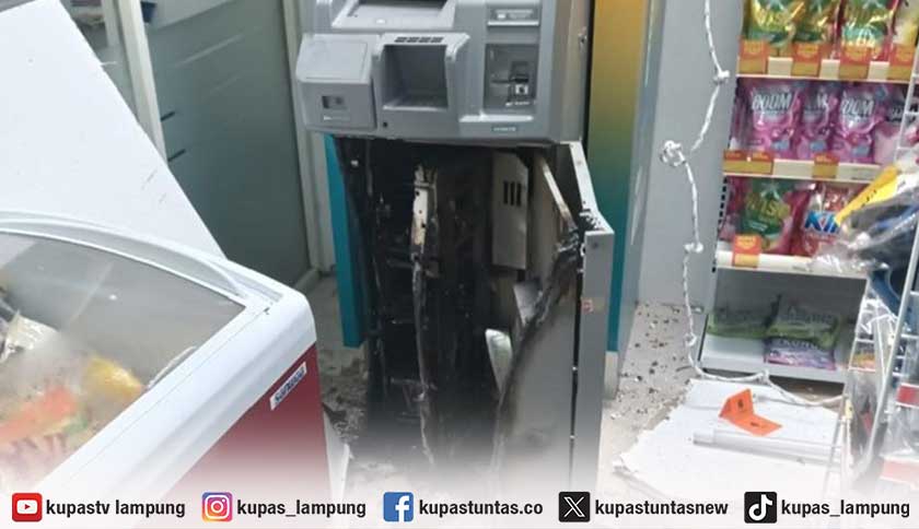 Kupastuntas.co, Pesawaran – Aksi pembobolan mesin Anjungan Tunai Mandiri (ATM) terjadi di sebuah toko waralaba di Dusun Sukamarga, Desa Gedong Tataan, Kecamatan Gedong Tataan, Kabupaten Pesawaran, Lampung. Komplotan pelaku berhasil membawa kabur uang tunai senilai Rp240 juta dengan cara merusak mesin ATM menggunakan peralatan las.