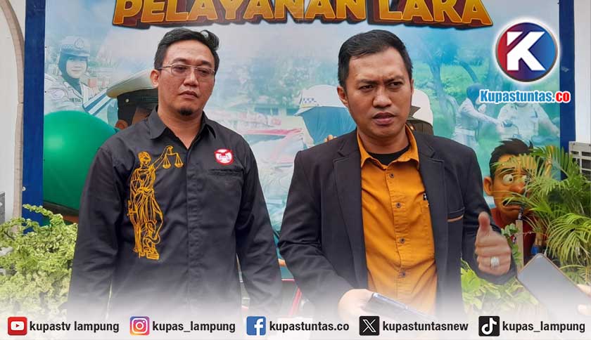 Kuasa hukum korban, Ahmad Ardinald saat memberikan keterangan kepada awak media di Polresta Bandar Lampung. Foto: Yudi/Kupastuntas.co