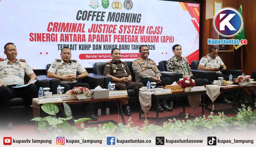 Kupastuntas.co, Bandar Lampung - Aparat penegak hukum (APH) di Kota Bandar Lampung matangkan koordinasi dalam rangka menyikapi implementasi Kitab Undang-Undang Hukum Pidana (KUHP) dan Kitab Undang-Undang Hukum Acara Pidana (KUHAP) baru yang berlaku pada tahun 2026.