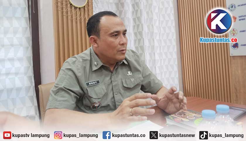 Kepala BPBD Provinsi Lampung Rudy Sjawal Sugiarto saat dimintai keterangan, Selasa (27/1/2026). Foto: Ria/Kupastuntas.co