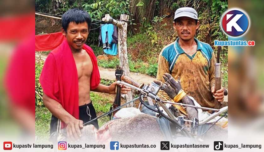 Bagu, warga Pekon Karang Brak, Kecamatan Pematangsawa, Kabupaten Tanggamus berburu babi hutan sudah biasa untuk menimalisir kerusakan tanaman mereka. Foto: Ist.