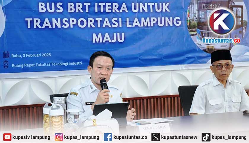 Kupastuntas.co, Bandar Lampung - Pemerintah Provinsi (Pemprov) Lampung mendorong pengembangan Bus Rapid Transit (BRT) ITERA sebagai proyek percontohan transformasi transportasi publik di Provinsi Lampung.