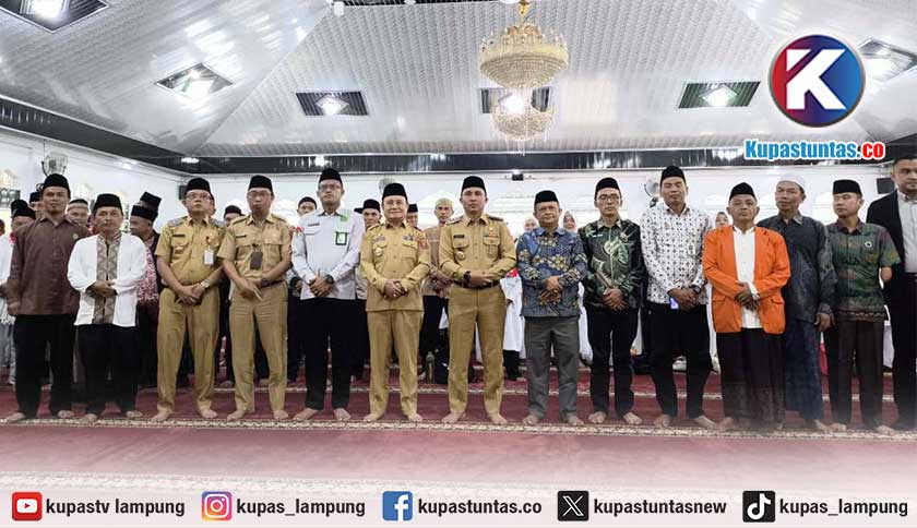 Bupati Lampung Barat, Parosil Mabsus, saat menghadiri acara Bimbingan Manasik Haji Terintegrasi Tingkat Kabupaten dan Kecamatan Tahun 1447 Hijriah/2026 M di Masjid Baiturrahman, Kelurahan Way Mengaku, Kecamatan Balik Bukit. Foto: Ist