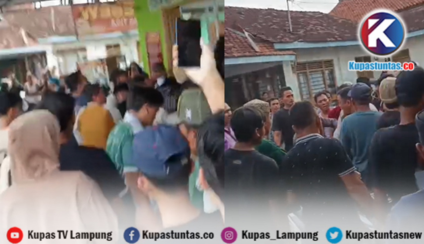 Tampak kerumunan massa mengeroyok pelaku pencurian motor di Untung Suropati Bandar Lampung. Foto: Ist