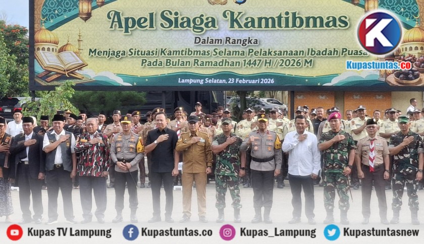 Kupastuntas.co, Bandar Lampung - Polda Lampung menggelar Apel Siaga dalam rangka menjamin situasi keamanan dan ketertiban masyarakat (Kamtibmas) dalam pelaksanaan ibadah di bulan suci Ramadan 1447 H / 2026 M.