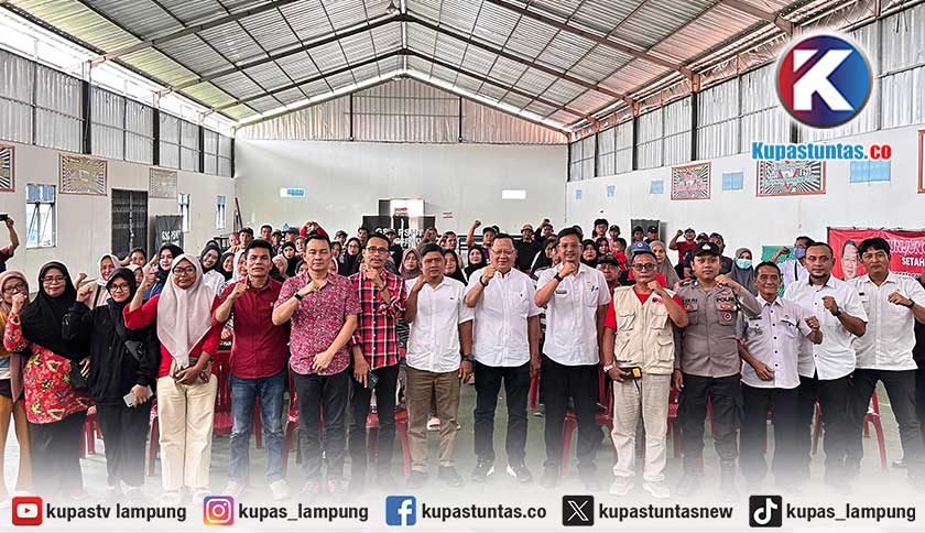 Anggota Komisi III DPR RI, Sudin foto bersama warga usai melaksanakan kegiatan reses di Balai Desa Tegal Sari, Kecamatan Gading Rejo, Kabupaten Pringsewu, pada Rabu (25/02/2026). Foto: Ola/Kupastuntas.co