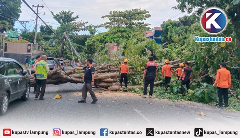Kupastuntas.co, Bandar Lampung - Sebuah pohon tumbang terjadi di