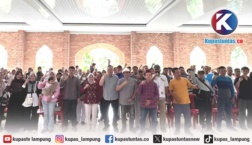 Anggota Komisi III DPR RI, Sudin berfoto bersama warga usai Reses, di Kecamatan Kemiling, Kota Bandar Lampung, Jumat (27/2/2026). Foto: Ola/Kupastuntas.co