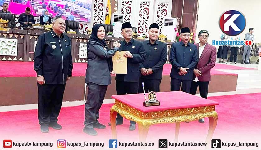 Kupastuntas.co, Bandar Lampung - DPRD bersama Pemerintah Kota (Pemkot) Bandar Lampung menetapkan Rancangan Peraturan Daerah (Raperda) tentang Pengelolaan Barang Milik Daerah (BMD) menjadi Peraturan Daerah (Perda) melalui persetujuan dalam rapat paripurna yang digelar di ruang sidang DPRD Bandar Lampung, Kamis (05/03/2026).