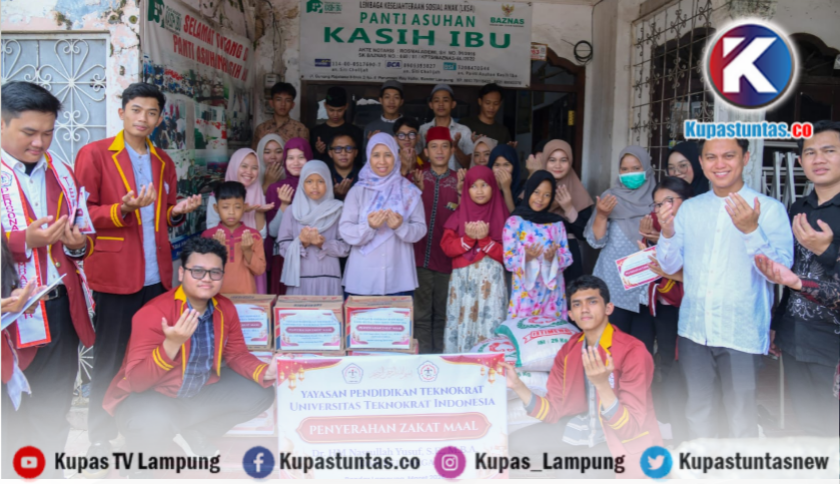 Kupastuntas.co, Bandar Lampung – Keluarga besar Universitas Teknokrat Indonesia Kampus Terbaik di Lampung kemarin menyalurkan zakat mal ke sejumlah panti asuhan. Salah satunya Panti Asuhan Kasih Ibu.