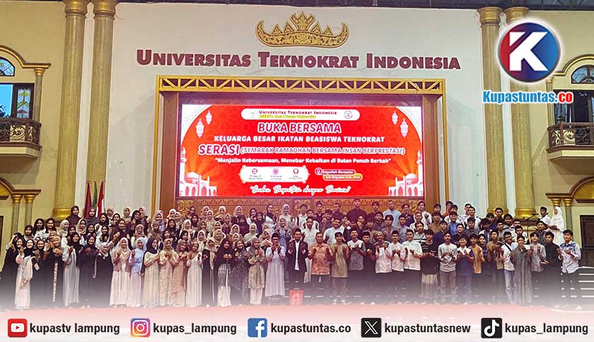 Kupastuntas.co, Bandar Lampung – Dalam rangka menyemarakkan bulan suci Ramadhan serta mempererat tali silaturahmi antar mahasiswa penerima beasiswa, Ikatan Beasiswa Teknokrat (IBATEK) menyelenggarakan kegiatan buka puasa bersama bertajuk SERASI (Semarak Ramadhan Insan Berprestasi) pada Minggu, 8 Maret 2026. Kegiatan yang digelar di Gelanggang Mahasiswa Dr. H.M Nasrullah Yusuf Universitas Teknokrat Indonesia ini dihadiri sekitar 250 mahasiswa penerima Beasiswa KIP Kuliah dan Beasiswa Pendidikan Yayasan Teknokrat.