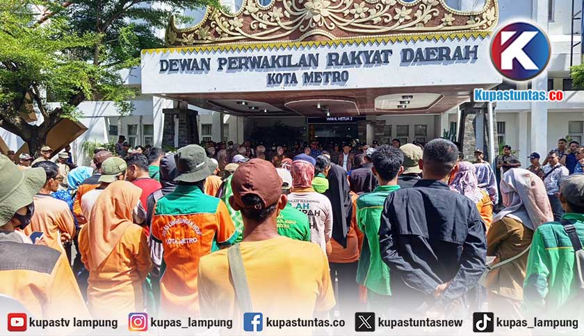Dari pantauan Kupastuntas.co, para demonstran yang datang sejak pagi hari didominasi pegawai dari Dinas Lingkungan Hidup Kota Metro. Mereka terdiri dari pasukan kuning yaitu petugas kebersihan kota dan pasukan hijau yang bertugas dalam pemeliharaan ruang terbuka hijau.