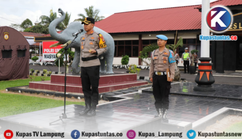Kapolres Lampung Barat, AKBP Samsu Wirman, memimpin apel pengamanan Idul Fitri. Foto: Ist