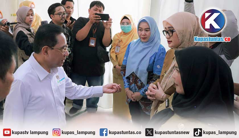 Kupastuntas.co, Bandar Lampung - Wakil Gubernur Lampung, Jihan Nurlela, mendampingi kunjungan Wakil Menteri Kesehatan Benjamin Paulus Octavianus dan Wakil Menteri Dalam Negeri Akhmad Wiyagus dalam rangka percepatan eliminasi tuberkulosis (TBC) secara berkelanjutan di Kota Bandar Lampung, Selasa (14/4/2026).