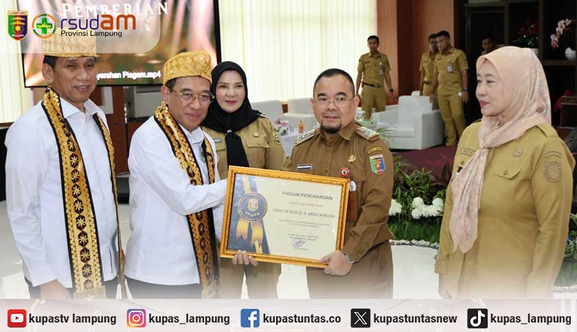 Kupastuntas.co, Bandar Lampung - Rumah Sakit Umum Daerah (RSUD) Dr. H. Abdul Moeloek menerima penghargaan dalam kegiatan di Aula Semergo, Selasa (14/4/2026), sebagai bentuk apresiasi atas kontribusinya dalam penanganan TB (tuberkulosis) di Provinsi Lampung.