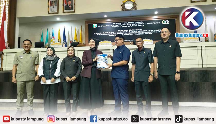 Kupastuntas.co, Bandar Lampung - Wakil Gubernur Lampung, Jihan Nurlela, menyampaikan Laporan Keterangan Pertanggungjawaban (LKPJ) Kepala Daerah Tahun 2025 dalam Rapat Paripurna DPRD Provinsi Lampung, dalam rangka Pembicaraan Tingkat I, Senin (27/4/2026).
