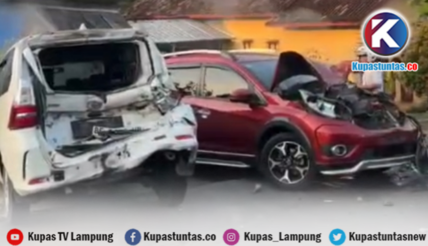Tampak dua mobil yang terlibat kecelakaan di Pesawaran rusak parah. Foto: Ist
