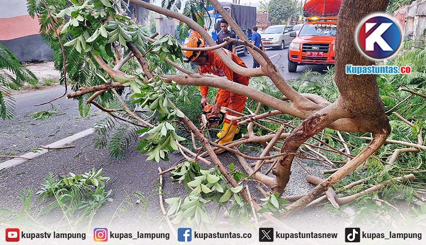BPBD Bandar Lampung Evakuasi Batang Pohon Patah Ganggu Jalan di Rasuna Said