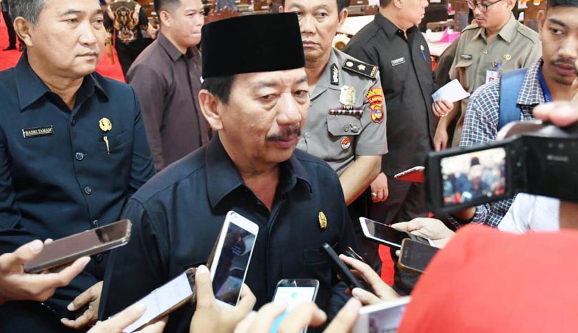 Wali Kota Bandar Lampung Herman HN, saat ditemui usai sidang paripurna Di DPRD Kota Bandar Lampung, Selasa (28/01/2020). Foto: Sulaiman
