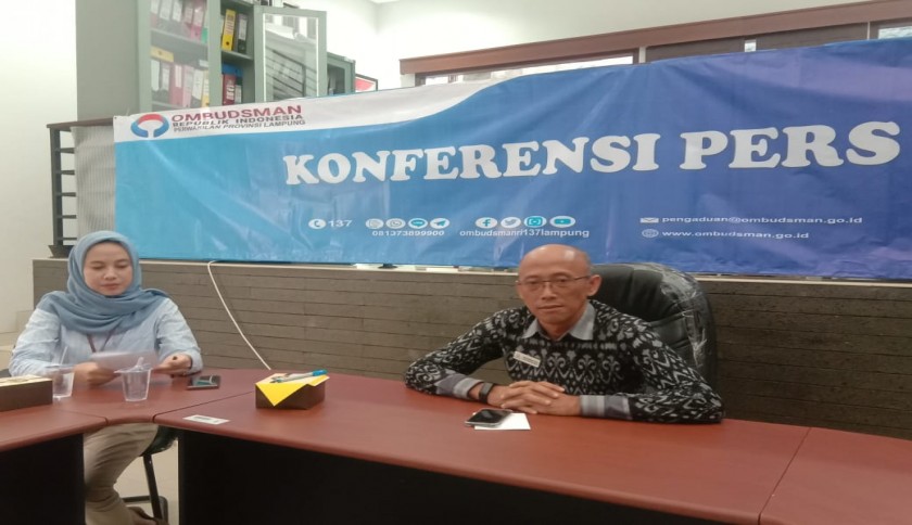 Kepala Ombudsman RI Perwakilan Provinsi Lampung, Nur Rakhman Yusuf melakukan konpres di kantornya, Selasa (11/2/2020).Foto:Sri