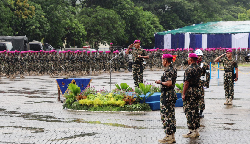 Meski saat acara berlangsung hujan terus turun deras, tak menyurutkan semangat Dankormar memimpin upacara. Pun begitu dengan ribuan prajurit Marinir yang mengikuti upacara.