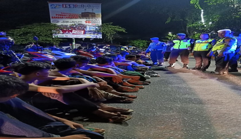 Bandar Lampung-Jajaran Polresta Bandar Lampung menggelar razia balapan liar di seputaran Jalan Sultan Agung, Way Halim, Bandar Lampung, Minggu (16/2/2020) dinihari.