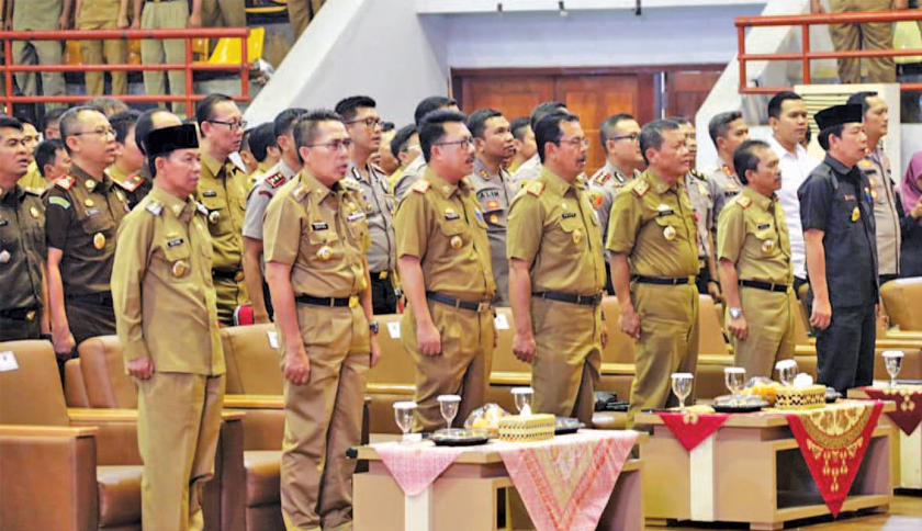 Bupati dan wali kota serta kepala desa se-Provinsi Lampung mengikuti rapat kerja percepatan penyaluran dan pengelolaan dana desa tahun 2020 di Gedung Seba Guna (GSG) Universitas Lampung, Selasa (18/2/2020). Foto: Ist/ Kupas Tuntas