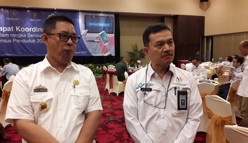 Kepala BPS Provinsi Lampung, Faizal Anwar (kanan) dan Staf Ahli Bidang Pemerintahan Pemprov Lampung Syaiful Darmawan (kiri), saat diwawancarai usai rapat koordinasi daerah dalam rangka sensus penduduk 2020 di Hotel Emersia Lampung, Rabu (19/2/2020). Foto: Tampan/kupastuntas.co